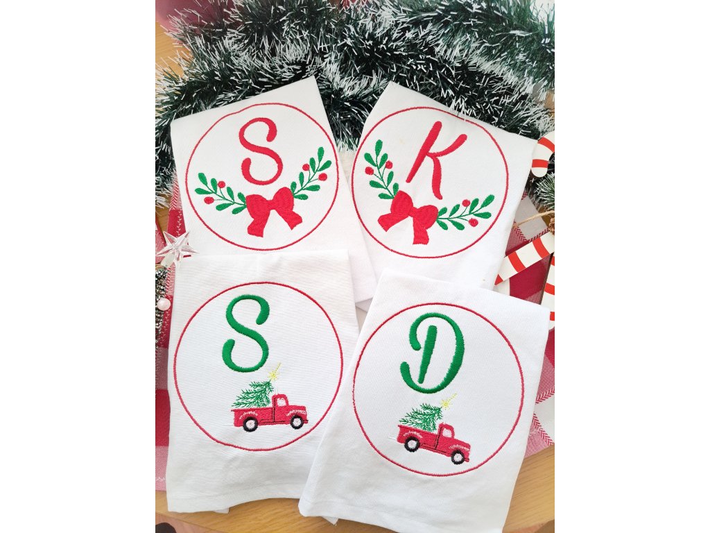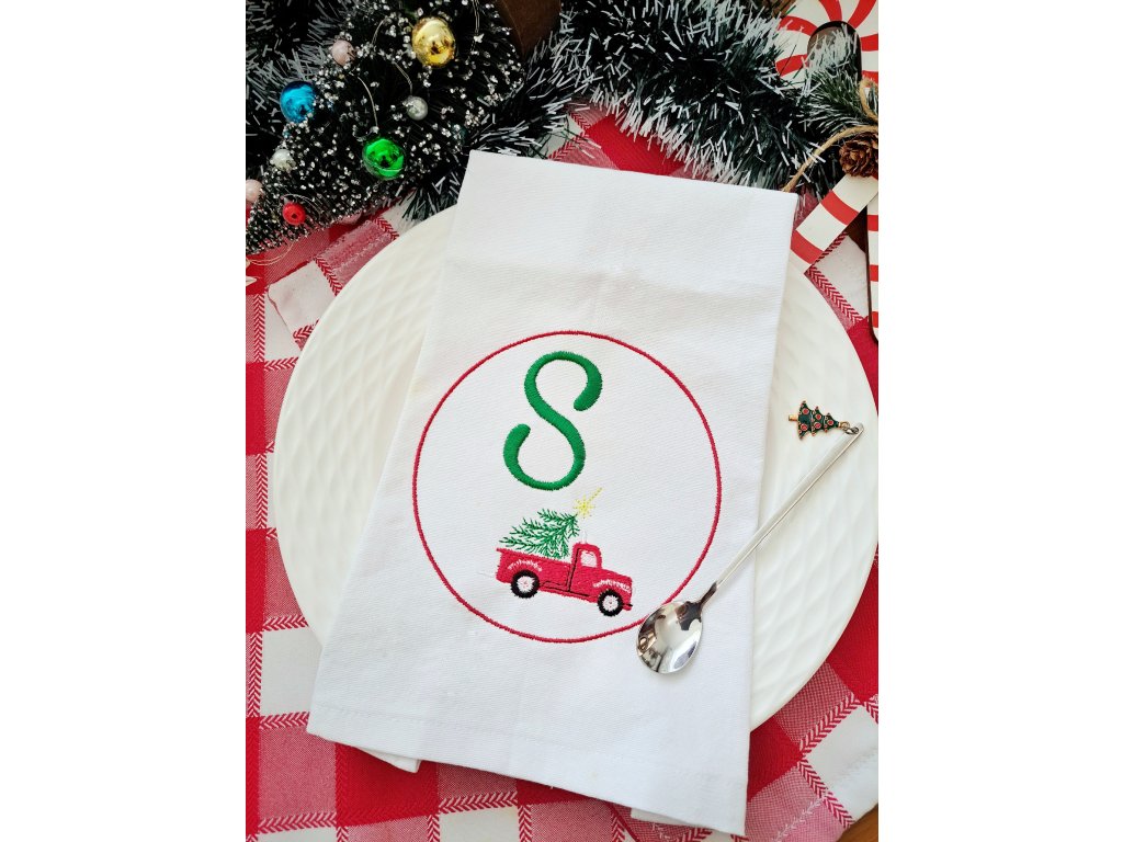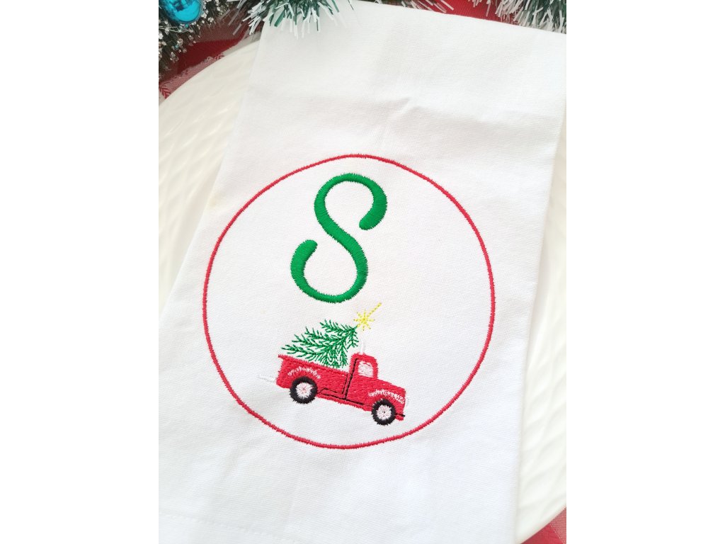 Vyšívaný dekoračný obrúsok písmenko s autíčkom alebo mašličkou. Obrúsok dodá Vášmu sviatočnému stolu šmrnc.