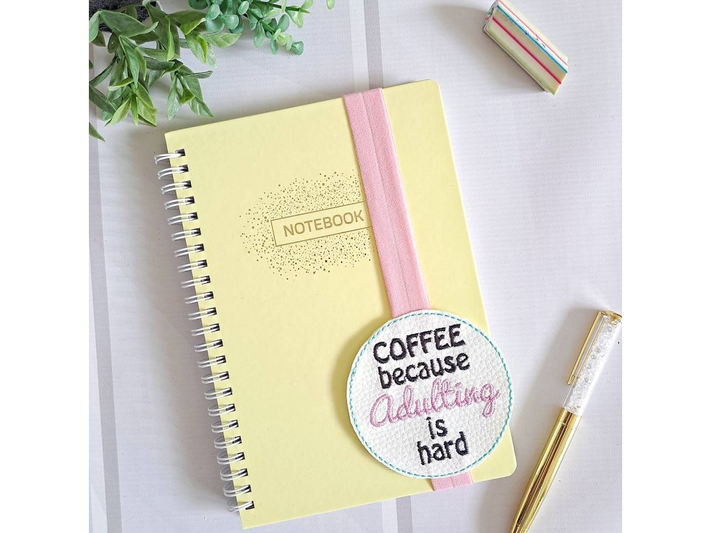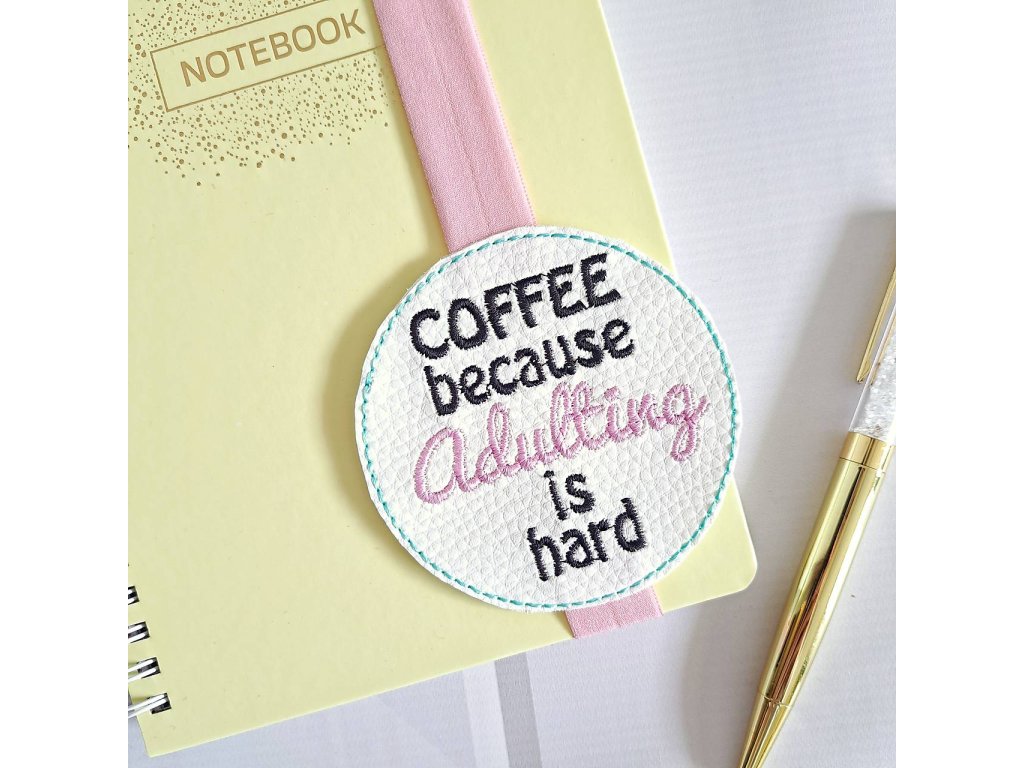 Vyšívaná motivačná záložka vyrobená z Ekokože.