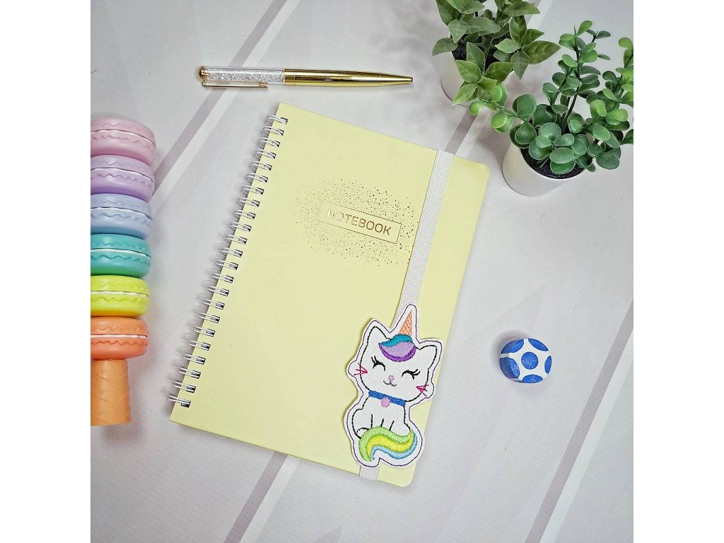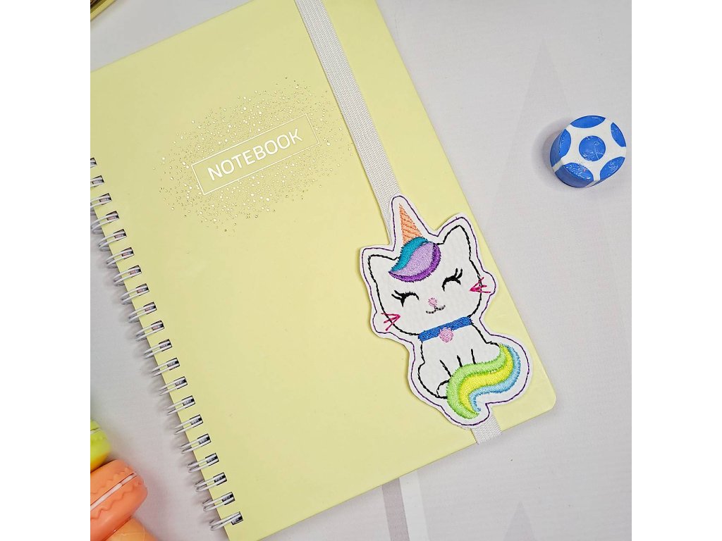 Vyšívaná záložka MAČIČKA vyrobená z Ekokože.