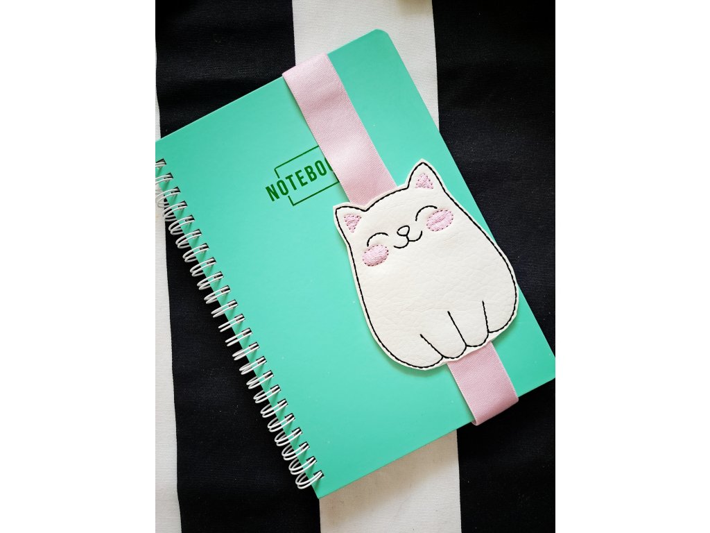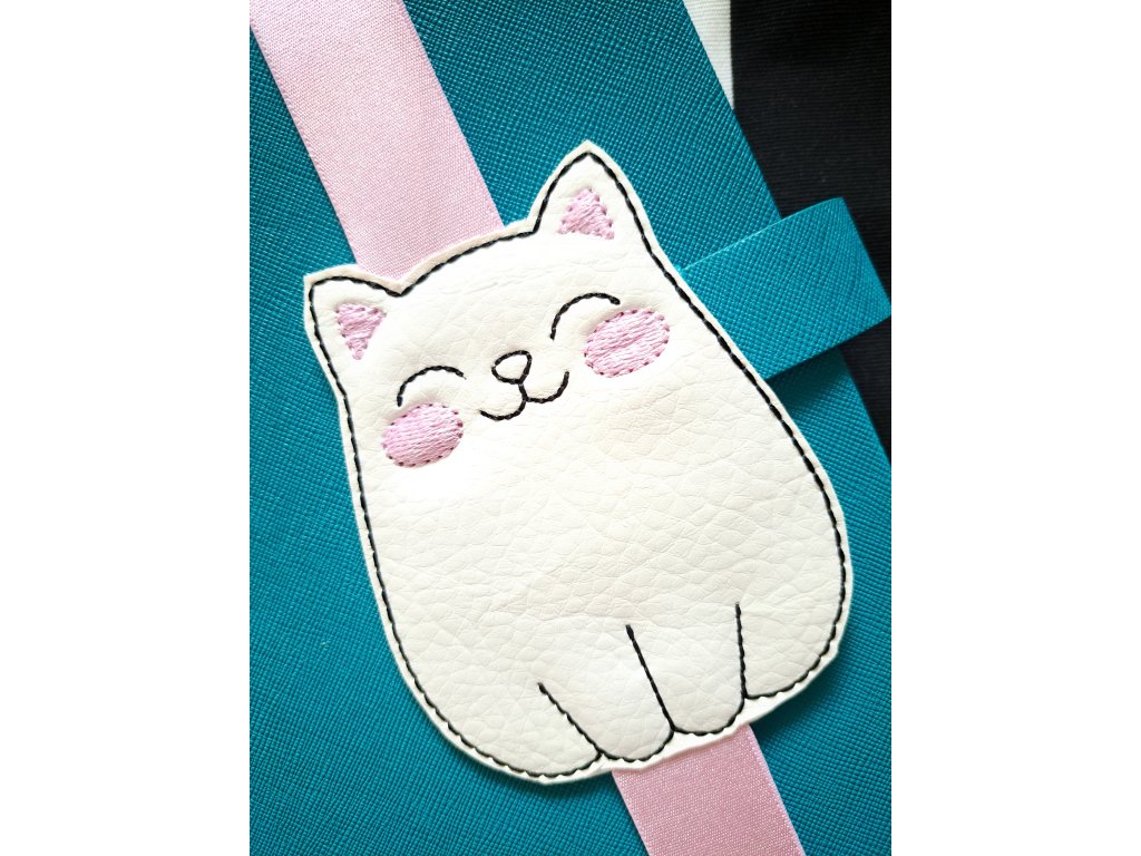Vyšívaná záložka MAČIČKA vyrobená z Ekokože.
